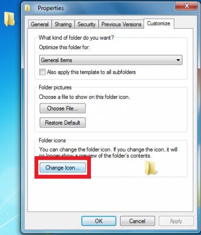 তারপর ফোল্ডারটির উপর "right" ক্লিক করে "Properties" এ "coustimize" ট্যাবে যান।"change icon" এ ক্লিক কুরুন।