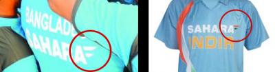 সাহারার মূল লোগোতে ভারতীয় পতাকার রং ব্যবহার করা হয়েছে যেটা দেখতে অনেকটা তাদের পতাকার মতোই। কিন্তু বাংলাদেশ দলের স্পন্সর হিসেবে তাদের লোগো ছাপা হয়েছে এক কালারে, যাতে জাতীয় দলের আইডেন্টিটি নিয়ে বিতর্ক তৈরি না হয়।