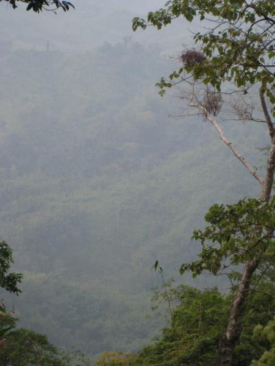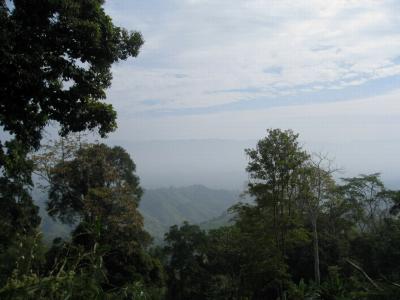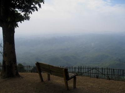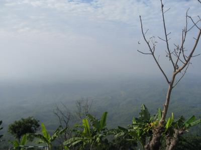 কুয়াশায় ঢাকা দূরে উঁচু মিজোরামের পাহাড়।