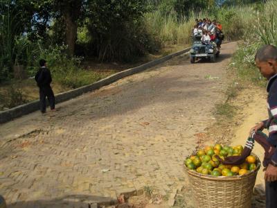 পাহাড় থেকে সংগৃহীত কমলা পরিবহণের অপেক্ষায়।
