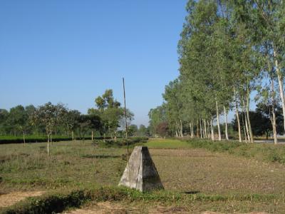 ৪৩৬ নম্বর সীমান্ত পিলার। ছবিতে বামের চা বাগান-টি ভারতীয় ভূ-খন্ডে.... ডানের সড়কটি বাংলাদেশের অভ্যন্তরে।