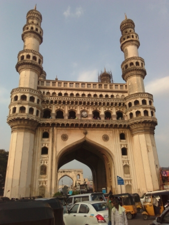নেহেরু পার্ক থেকে বেড়িয়ে ছুটলাম চারমিনার দেখার জন্য। নেহেরু জুলজিক্যাল পার্ক থেকে চারমিনারের দূরত্ব পাঁচ কি:মি: মতো হবে। খুব দ্রুতই পৌছে গেলাম। আমরা এখন হায়দারাবাদ সিটির কেন্দ্র বিন্দুতে। চারমিনারকে কেন্দ্র করেই পুরো হায়দারাবাদ সিটির নকসা করা হয়েছে। এটি ভারতের তালিকাভুক্ত সর্বজনস্বীকৃত একটি স্থাপনা। ১৫৯১ খ্রিস্টাব্দে মোহাম্মদ কূলই কুতুব শাহ চারমিনার তৈরী করেন মসজিদ ও মাদ্রাসা হিসেবে ব্যবহারের উদ্দেশ্য। চারমিনারের আকার বর্গাকৃতির। যার প্রত্যেক দিকের দৈর্ঘ্য ২০ মিঃ (প্রায় ৬৬ ফুট), যার মধ্যে চারটি বড় বড় খিলান আছে, যা চারটি বড় রাস্তার নির্দেশক।এর প্রত্যেক কোনায় স্তম্ভগুলো সুন্দর কারুকাজ করা। দ্বিস্তর বেলকুনি বিশিষ্ট মিনার, যা কিনা উচ্চতায় ৫৬ মিঃ (প্রায় ১৮৪ ফুট)। প্রত্যেকটি মিনারের মাথায় মুকুটের মতন সুন্দর কারুকাজ করে কাটা। এবং প্রত্যেক মিনারের ভিত্তিতে ফুলের পাপড়ির মতন নকশা করা। চারমিনারের চূড়ায় উঠার জন্য ১৪৯ ধাপসম্পন্ন পেচানো সিড়ি রয়েছে। এই স্থাপনাটি গ্রানাইট, চুনাপাথর ও মার্বেল পাথর দিয়ে তৈরী।