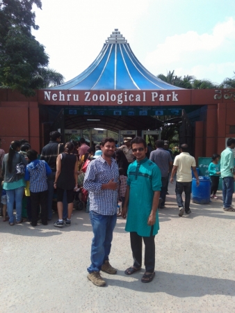 আমাদের ক্যাম্পাস থেকে নেহেরু জুলজিক্যাল পার্ক খুব বেশি দূরে নয়। পনের কি:মি: মতো হবে। একটি অটো নিয়ে নিলাম। অল্প সময়ের মধ্যেই পৌছে গেলাম। ছুটির দিন হওয়ার কারনে পার্কের গেটে বেশ ভির। দলে-দলে মানুষ আসছে। বেশির ভাগই মুসলিম ফ্যামেলি। মহিলারা গাঢ় কালো রংয়ের বোরকা দিয়ে আচ্ছাদিত। বন্ধু রঞ্জিতের মাধ্যমে জানা গেল, পার্কের আশে-পাশের পুরো এলাকাটাতেই মুসলিমদের বসবাস।