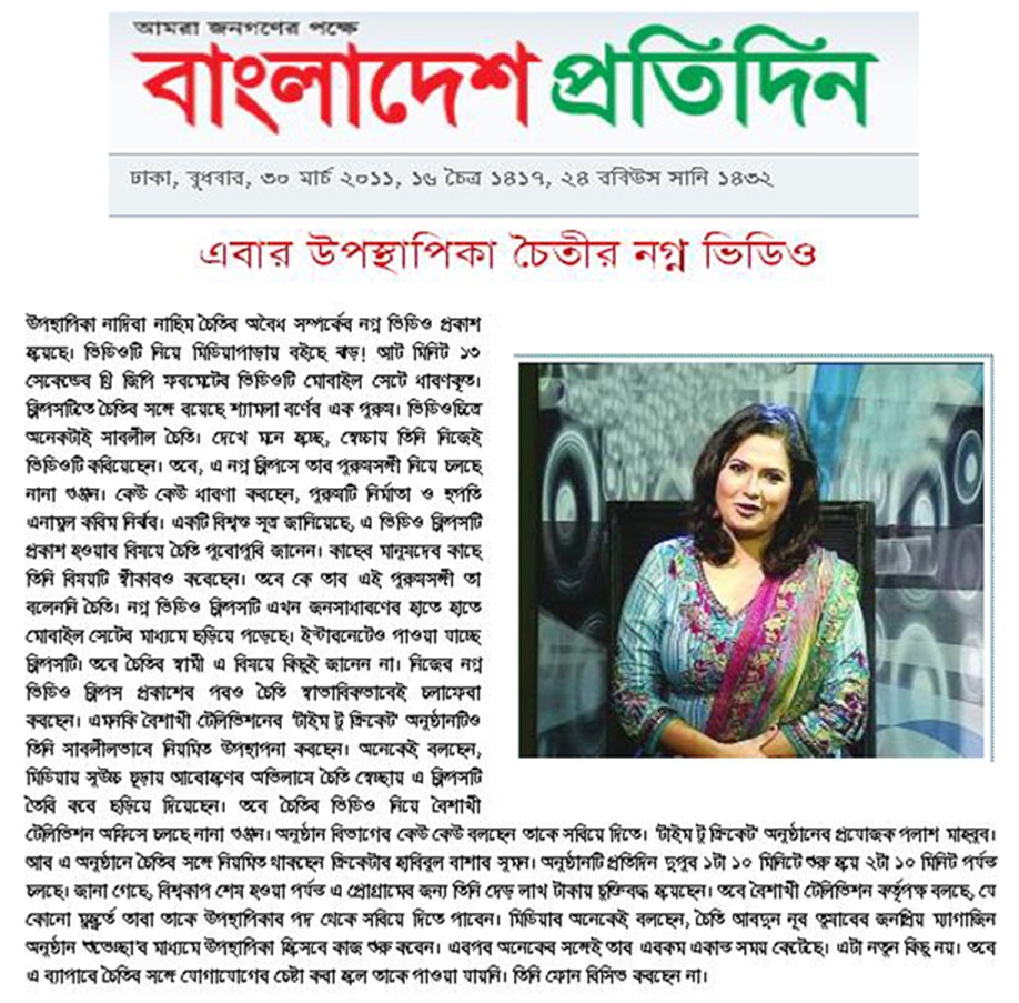 বাংলাদেশী পর্ণস্টার ও সিনেমা পরিচালক এনামুল করিম নির্ঝরের ভিডিও স্কান্ডাল নিয়ে সাম্প্রতিক সময়ে মিডিয়ায় আলোচনার ঝড় উঠেছে। উপস্থাপিকা চৈতির সঙ্গে তার ৮ মিনিট ১৩ সেকেন্ডের শারীরিক সম্পর্কে ভিডিওটি নিয়ে এনামুল করিম নির্ঝরের সাফ জবাব হলো, পুরো ভিডিওটি ফেক!