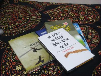 ফেব্রুয়ারী মাসে ব্লগ পড়বার সময় চোখের সামনে যে'কটা বইয়ের নাম, লেখক আর প্রকাশনীর নাম পেয়েছিলাম টুকে রেখে ভাইকে বলেছিলাম সংগ্রহ করতে। তার মধ্যে আছে "অপরবাস্তব-৪", সাজি আপুর "অপ্রকাশিত চিঠি", মুহম্মদ জায়েদুল আলমের "গ্রহচারী", মনজুরুল হকের "আ লিটল ফাইটার স্লিপিং উইথ আর্মস" আর আমার "উনি" একটা বই কিনতে বলেছেন, আমি অবশ্য জানতাম না। একদিন জানতে চাইলাম বইটার নাম কি? বলে "নির্বাসিতের আপনজন" আরে এটাতো আমাদের ব্লগেরই বই, তুমিতো ব্লগ পড়ো না, এই বইয়ের খোঁজ পেলে কিভাবে!!!..."আমাদের ডিপার্টমেন্টের বড় ভাইয়ের লেখা বই, অবশ্যই সংগ্রহ করতে হবে"। ভালোই হলো বইটার কথা আমার মনেই ছিলোনা...