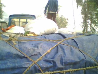 ৩ টনের একটা ট্রাক ভাড়া করা হল। কাপড়ের বড় 'ঢোপ' (অনেক বড় বস্তা) ৬টা আর ঢাকা থেকে নেয়া ১০ বস্তা কাপড়ে পুরো ট্রাক ভরে গেল।