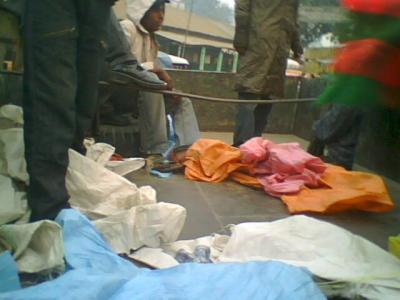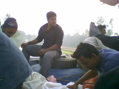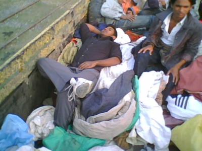 ট্রাকের পেছনে কাপড়ের উপর বসে রওনা দিলাম। কাপড়ের জন্য বসার জায়গা হয়নি। :O