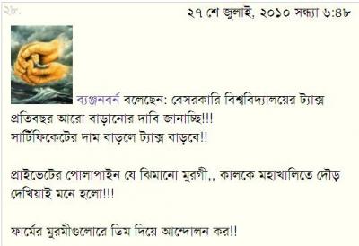আরেক নোবেল-অস্কারপ্রাপ্ত মেধাবী অবশ্য একটু মোলায়েম ভাষায় প্রাইভেট ইউনির ছাত্রদের মুরগী, আন্ডা ইত্যাদি বলে গেছেন।