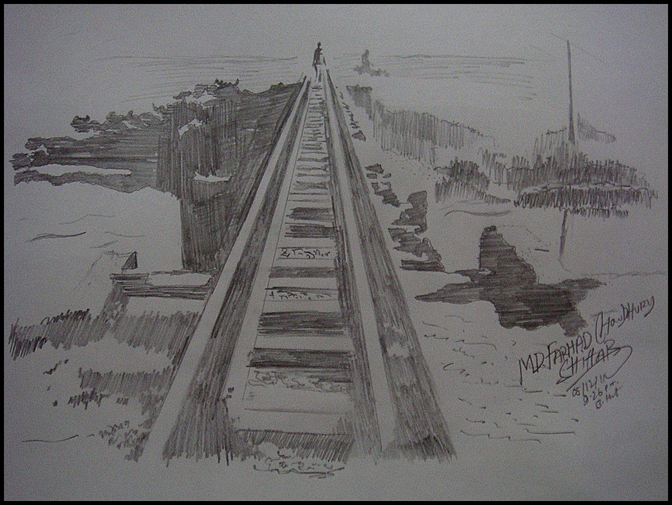 সূর্যটা দ্বি-প্রহরের চৌকাঠ পেড়িয়ে ঝুলে পড়তে আরাম্ভ করেছে পশ্চিমের ধান ক্ষেতগুলোয়। আকাশে একরত্তি মেঘ নেই। নীলের মধ্যে হাল্কা সাদার স্ক্যাচ টেনেছে কেউ যেন খুব নিপুন হাতে। তার মাঝেই সূর্যটা আগুণ ঢেলে কমলা বর্ণ ধারণ করছে ধীরে ধীরে। বাঁক নিয়ে চলে যাওয়া রেল লাইনটায় পা টেনে টেনে হাটছে তপু। মুখ ঝুঁকিয়ে রেখেছে নিচের দিকে। বহু দূর থেকে ট্রেনের হুইসেলের শব্দ পাওয়া যাচ্ছে।
