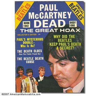 বিশ্বকাপানো সবার প্রিয় ব্যান্ড ‘Beatles’ কে নতুন করে বলার কিছু নেই। সবাই এদের গানের ভক্ত। সেই ব্যান্ডের Paul McCartney কে তো সবাই চিনেন?? একদলের ধারণা ১৯৬৬সালেই এক গাড়ি দূর্ঘটনায় Paul মারা যায়। কিন্তু ১৯৬৬সালের পরও তো Paul ব্যান্ডের হয়ে গান গাচ্ছে...ঘুরে বেড়াচ্ছে। ধারণা করা হয় এটি ছিলো হুবহু Paul এর মতো দেখতে একলোক। যাকে Paul এর মৃত্যুকে লুকানোর জন্য আনা হয়েছে। এমনকি অনেকের ধারণা ১৯৬৬সালের পর Beatles এর অনেক গানে অন্যভাবে Paul এর মৃত্যুর কথার ইঙ্গিত দেয়া হয়েছে।