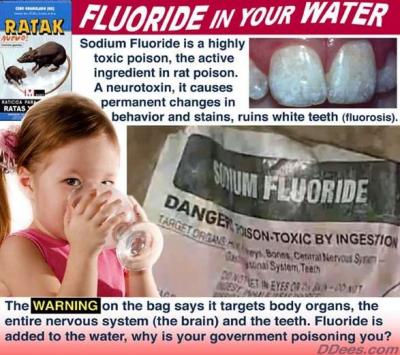 দাতের ক্ষয় কমানোর জন্য পানযোগ্য পানিতে Fluoride মেশানো হয় এটা সবাই জানেন। আবার বৈজ্ঞানিকভাবেই প্রমাণিত যে এই Fluoride এর অনেক খারাপ ব্যাপার আছে। এর সাইড এফ্যাক্টে মানুষের শরীর নানাভাবে আক্রান্ত হয়। একদলের ধারণা এসব জানা সত্ত্বেও WHO এই Fluoride প্রয়োগকে নিষেধ করছে না। কারণ এর পিছনে রয়েছে বিশাল ব্যবসা। এর পিছনে রয়েছে সব ঔষুধ কোম্পানী। মানুষ অসুস্হ থাকলেই তো এদের লাভ। মানুষ অসুস্হ না থাকলে এত ঔষুধ কোম্পানী চলবে কি করে ??