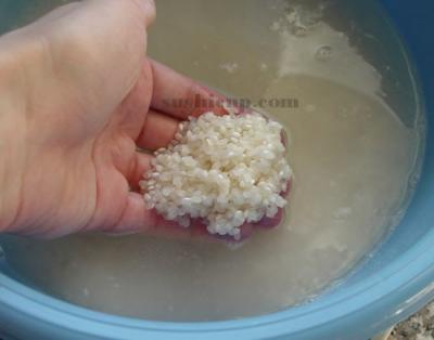 রান্নার পূর্বে চাল কমপক্ষে ৩০ মিনিট পানিতে ভিজিয়ে রাখতে হবে। ভিজিয়ে রাখার পর দেখতে হবে চাল নিচের ছবির মতো আছে কিনা... যদি নিচের ছবির মতো থাকে তাহলে আরো ভিজিয়ে রাখতে হবে।