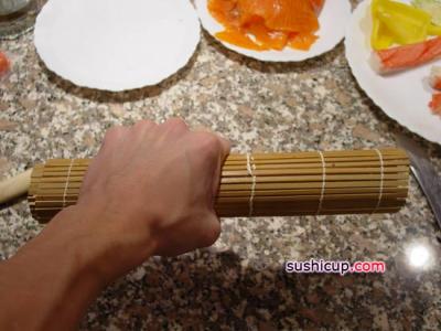 এরপর রোলটি একহাতে নিয়ে অন্যহাতে পানি নিয়ে নোরির উপর ঘষে দিতে হবে। এতে করে নোরি নরম হয়ে যাবে। ফলে পরবর্তীতে রোলটি কাটার সময় নোরি ভেঙে যাবে না...
