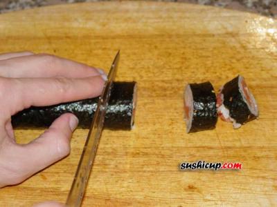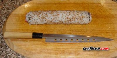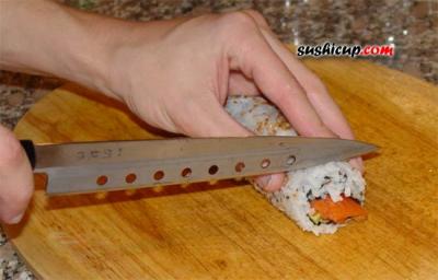এরপর ধারালো ছুরির সাহায্যে ছবির মতো করে কাটতে হবে সুসি রোল গুলো...