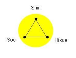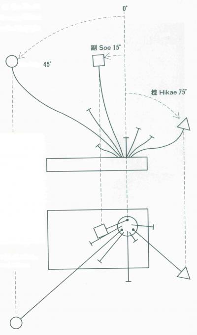 কেনযেনকে আপনার সামনে উপরের বৃত্তটির মতো করে ভাবুন। এবার লক্ষ্য করুন তিনটি অবস্থান- সিন, সোই এবং হিকাই। এই তিনটি পজিশনেই আপনার ফুল ও ডাল গাথঁতে হবে।