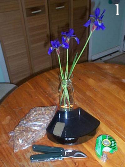 ১) ছবির মতো করে ছড়ানো ফুলদানীতে গজ টেপ দিয়ে আটকাতে হবে।