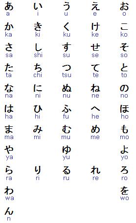 ছবিঃ হিরাগানা অক্ষরসমূহ