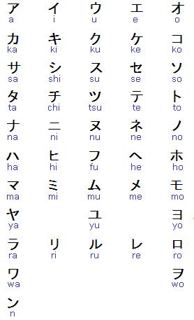 ছবিঃ কাতাকানা অক্ষরসমূহ