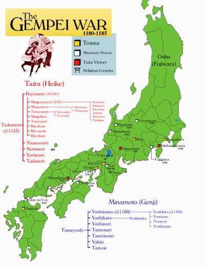 দ্বাদশ শতকে দুইটি মিলিটারী ফ্যামিলি প্রচুর ক্ষমতা অর্জন করে। এই দুইটি ফ্যামিলি হচ্ছে - মিনামোটো বা গেন্জি (Minamoto or Genji) এবং টাইরা বা হিকি (Taira or Heike) ফ্যামিলি। টাইরারা গুরুর্ত্বপূর্ণ অফিস সমূহ হতে ফুজিওয়ারাদের বের করে দেয়। অপরদিকে মিনামোটোরা পর পর দুইটি যুদ্ধের মাধ্যমে (১০৫০-১০৫৯ এবং ১০৮৩-১০৮৭) হনসুর উত্তরাংশ জাপানের নিয়ন্ত্রণে আনে এবং একই সঙ্গে আরো মিলিটারী অভিগ্গতা অর্জন করে।