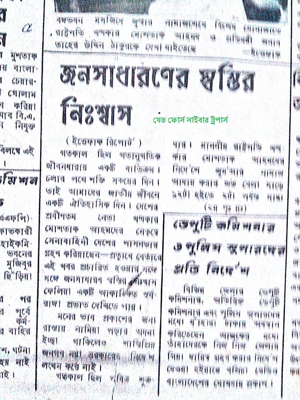 আগষ্ট ১৭, ১৯৭৫ সাল ইত্তেফাকে পরিস্কার বলা আছে মুজিব হত্যায় মানুষজন স্বস্ত্যির নিঃশ্বাস ফেলছে এমন কি মানুষজন কোলাকুলি ও করেছে।