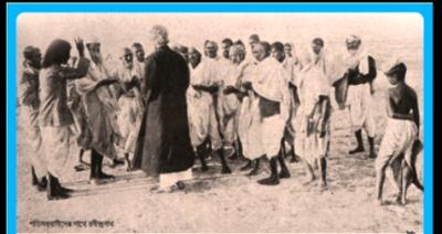 (পতিসরে আপন প্রজাগণের সাথে জমিদার কবির একটি বিরল ছবি)