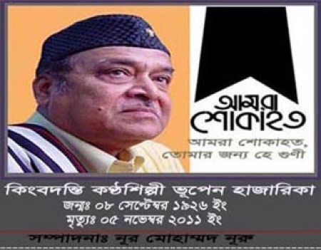 ভারতীয় সঙ্গীত জগতের পুরোধা ব্যক্তিত্ব এবং বিশ্বশিল্পী কিংবদন্তিতুল্য গায়ক ও সঙ্গীতনির্মাতা ভূপেন হাজারিকা। অত্যন্ত দরাজ গলার অধিকারী এই কণ্ঠশিল্পীর জনপ্রিয়তা ছিল আকাশচুম্বী। শিশু কণ্ঠশিল্পী হিসেবে অসমিয়া চলচ্চিত্রে সঙ্গীত পরিবেশনের মাধ্যমে গানের জগতে প্রবেশ করেন তিনি। মাত্র ১২ বছর বয়সেই মূর্ত হয়ে ওঠে তাঁর সঙ্গীতপ্রতিভা। ১৯৩৯ সালে তিনি অসমীয়া ভাষায় নির্মিত দ্বিতীয় চলচ্চিত্র জ্যোতিপ্রসাদ আগরওয়ালা পরিচালিত ইন্দুমালতী ছবিতে "বিশ্ববিজয় নওজোয়ান" শিরোনামে নিজেই একটি গান লিখে সুরারোপ করেছিলেন। পরবর্তীকালে আবির্ভূত হন অসমীয়া চলচ্চিত্রে এবং নিজেই অসমীয়া চলচ্চিত্রের একজন গুণী পরিচালক হয়ে ওঠেন। আসাম, পশ্চিমবঙ্গ এবং বাংলাদেশে ব্যাপক জনপ্রিয়তা লাভ করে তাঁর চলচ্চিত্র। তবে মানুষকে তিনি সর্বাধিক আলোড়িত করেছেন তাঁর সঙ্গীত দিয়ে। অসমীয়া ভাষা ছাড়াও বাংলা ও হিন্দি ভাষাতেও তিনি সমান পারদর্শী ছিলেন এবং অনেক গান গেয়েছেন। অবশ্য এসব গানের অনেকগুলোই মূল অসমীয়া থেকে বাংলায় অনূদিত। তাঁর গানে প্রশ্ন-উত্তর-দ্বিধা-যুক্তির ছন্দে ছন্দে মানুষের কথাই ধ্বনিত হয়েছে বারবার। কিংবদন্তিতুল্য গায়ক ও সঙ্গীতনির্মাতা ভূপেন হাজারিকার আজ ৩য় মৃত্যুবার্ষিকী। ২০১১ সালের আজকের দিনে তিনি মুম্বাই কোকিলাবেন ধীরুভাই আম্বানি হাসপাতালে মৃত্যুবরণ করেন। বিশ্বশিল্পী ভূপেন হাজারিকার মৃত্যুদিনে আমাদের শ্রদ্ধাঞ্জলি