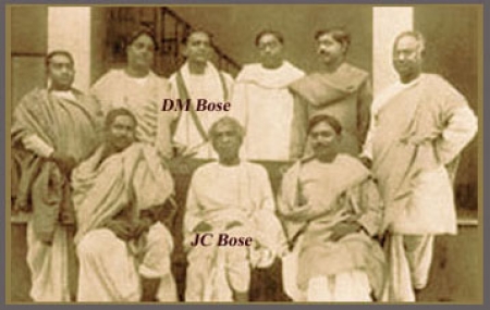 (বিখ্যাত বিজ্ঞানী মামা জগদীশচন্দ্র বসুর পেছনে দাঁড়ানো দেবেন্দ্রমোহন বসু)