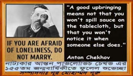 বিশ্বসাহিত্যের অন্যতম সেরা ছোটগল্প লেখক ও নাট্যকার আন্তন পাভলোভিচ চেখভ এর আজ ১৫৫তম জন্মবার্ষিকী। বিখ্যাত রুশ ছোটগল্পকার ও চিকিৎসক আন্তন পাভলোভিচ চেখভ এর জন্মদিনে ফুলেল শুভেচ্ছা।