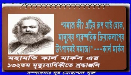 আজ মহান দার্শনিক, সমাজ বিজ্ঞানী ও মার্ক্সবাদের প্রবক্তা কার্ল মার্ক্সের ১৩২তম মৃত্যুবার্ষিকী। আসুন এই মহান দার্শনিকের মৃত্যু দিবসে নতুন করে জানি তাঁর বিপ্লবী জীবন ও তার মতবাদের বিরুদ্ধাচারনকারীদের বিরুদ্ধে স্বয়ং মার্ক্স কিভাবে লড়াই করেছেন কিংবা কিভাবে বিপ্লবকে সংজ্ঞায়িত করেছেন। তার বিপ্লবী সংগ্রামী জীবন ও মতবাদ হয়ত আমাদের কে সত্য মিথ্যার পার্থক্য নিরূপণে সাহায্য করবে।উনবিংশ শতাব্দীর প্রখ্যাত জার্মান চিন্তাবিদ, দার্শনিক, সমাজ বিজ্ঞানী ও মার্ক্সবাদের প্রবক্তা কার্ল মার্ক্স এর মৃত্যুবার্ষিকীতে আমাদের শ্রদ্ধাঞ্জলি।