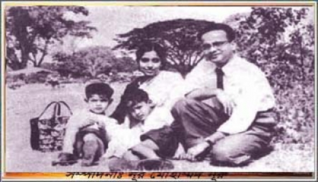 (১৯৫৮ সালে স্বামী শরীফ এবং দুই পুত্র রুমী-জামীসহ জাহানারা ইমাম)