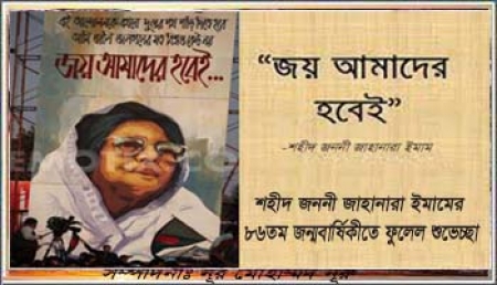 মুক্তিযুদ্ধের লক্ষ লক্ষ মায়ের সন্তান বিয়োগের চিরন্তন যাতনা মূর্ত হয়ে উঠেছে যাকে কেন্দ্র করে তিনি শহীদ জননী জাহানারা ইমাম। শহীদ রুমির মা আবির্ভূত হয়েছিলেন লক্ষ শহীদের জননীরূপে। ১৯৭১ সালে মুক্তিযুদ্ধ শুরু হলে তার সন্তান রুমী ও সঙ্গী মুক্তিযোদ্ধাদের আশ্রয় ও খাদ্য দেয়া, অস্ত্র আনা নেয়া ও যুদ্ধ ক্ষেত্রে তা পৌঁছে দেয়া ইত্যাদি ছিল তার মুক্তিযুদ্ধকালিন প্রধান ভূমিকা। যুদ্ধের শেষদিকে রুমী পাকিস্তানীদের হাতে ধরা পড়েন এবং নির্মম নির্যাতনের শিকার হয়ে মৃত্যুবরণ করেন। বিজয় লাভের পর রুমীর বন্ধুরা রুমীর মা জাহানারা ইমামকে সকল মুক্তিযোদ্ধার মা হিসেবে বরণ করে নেন৷ রুমীর শহীদ হওয়ার সূত্রেই তিনি ‘শহীদ জননী’র মযার্দায় ভূষিত হন ৷ ১৯২৯ সালের আজকের দিনে তিনি ভারতের মুর্শিদাবাদে জন্মগ্রহণ করেন। আজ শহীদ জননীর ৮৬তম জন্মবার্ষিকী। জন্মদিনে শহীদ জননীকে স্মরন করছি গভীর শ্রদ্ধা আর ফুলেল শুভেচ্ছায়।