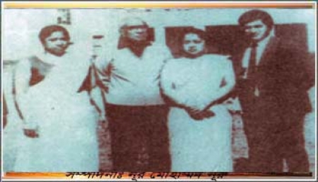 (বাঁ থেকে বড় মেয়ে বিজয়া, রণদাপ্রসাদ সাহা, ছোট মেয়ে জয়া ও ছেলে রবি)