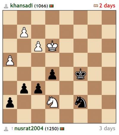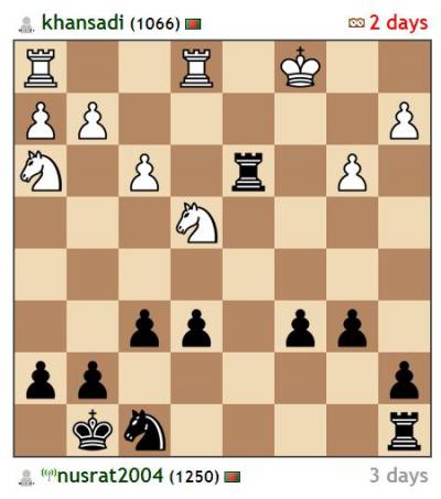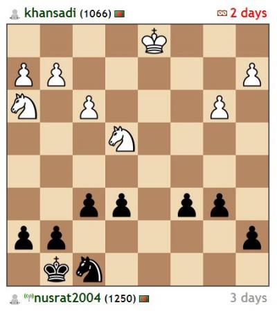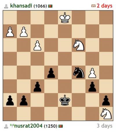 কিন্তু আমার সাথে নৌকাদুটি কাটাকাটি করে আমার পজিশন খারাপ করে দেন খান সাদী। এবার খান সাদীর দুই ঘোড়া বনাম আমার এক ঘোড়া। ২৭ তম চালের ছবি নিচে।
