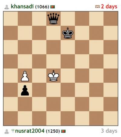 এরপর খান সাদীর করনীয় একটাই ছিল। আমার কোন ভুলের সুবাদে যদি খেলা ড্র হয়। কারন রাজা কোন চাল দিতে পারছেনা এমন পজিশনে খেলা ড্র হয়ে যায়। কিন্তু আমিও এই ব্যাপারে এলার্ট ছিলাম। ৬৮ তম চালে খান সাদীর রাজাকে চেকমেট করে ফেলি।