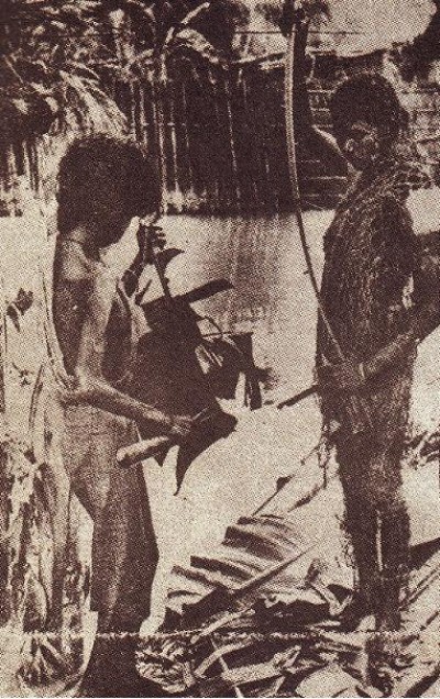 ছবিটি রংপুরের চিলমারীর। বস্র সংকত আর দুর্ভিক্ষের এক জীবন্ত প্রতিচ্ছবি তারা। গায়ে মাছ ধরার জাল আর ক্ষুধা নিবৃতির জন্য কলাপাতার ডাটা সংগ্রহ করছে এই দুই নারী