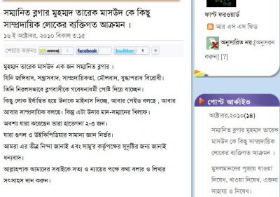 সম্মানিত ব্লগার মুহম্মদ তারেক মাসউদ কে কিছু সাম্প্রদায়িক লোকের ব্যাক্তিগত আক্রমন।