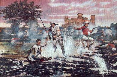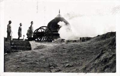 এনেছিল, তা একটি উচুস্থানে স্থাপন করা হয়। এ তোপের প্রথম ফায়ার এতটা সফল হয় যে, এর গোলা ঠিক ইংরেজদের তোপের মুখে গিয়ে পড়ে। ফলে ইংরেজদের তোপটি টুকরো টুকরো হয়ে যায়।