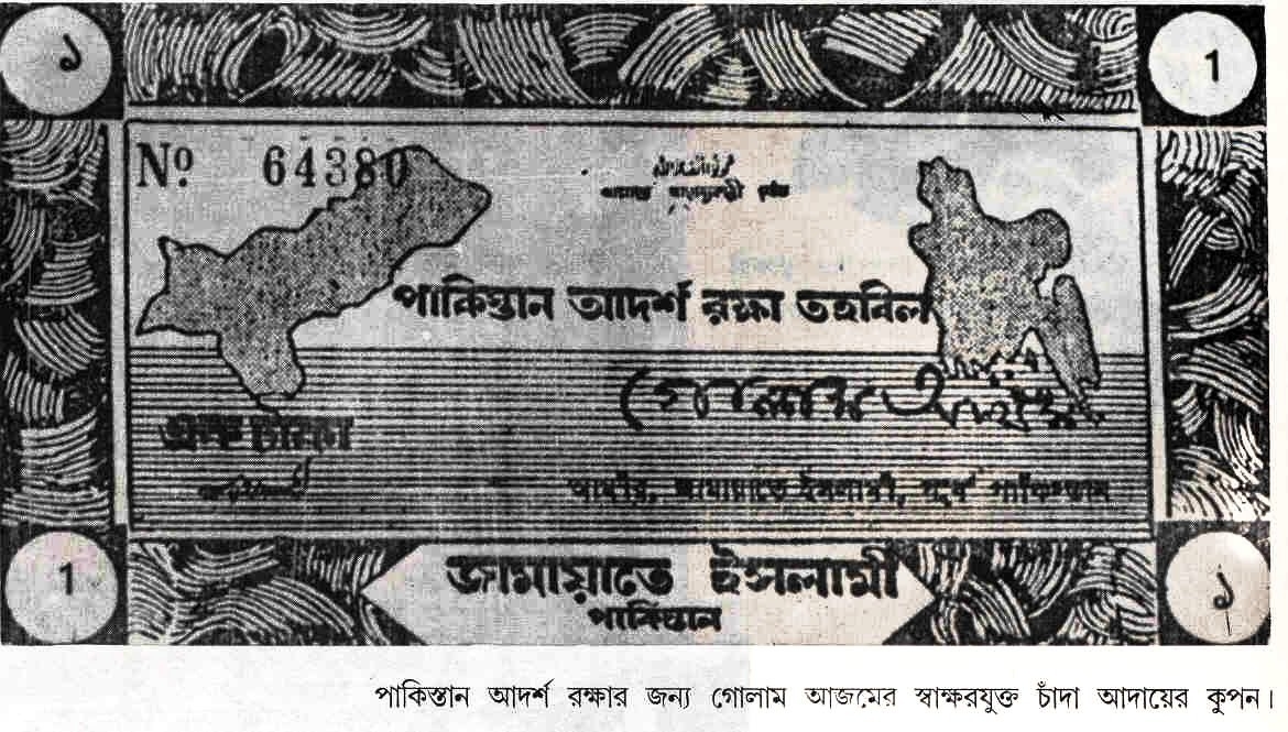 মাত্রই মেইলে ছবিটা পাঠালেন জালাল ভাই। আনুষঙ্গিক বর্ণনা ছাড়াই তুলে দিচ্ছি। মূলকথা হচ্ছে বিজয়ের পর গোলাম আযম ও তার সহমতরা এই চাঁদাবাজি চালিয়ে গেছে স্বাধীন বাংলাদেশের অস্তিত্বকে বিলীন করতে। সফল হতে পারেনি এখনও। পারবে কী!!!