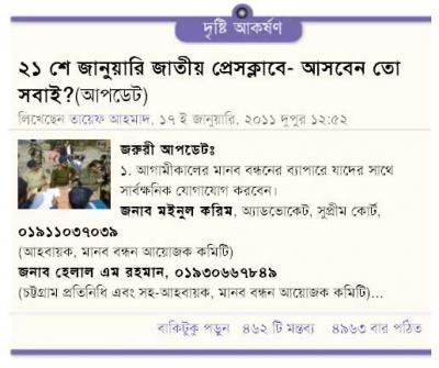 সর্বশেষ প্রমাণিত হলো পোস্টে দেয়া যোগাযোগ করার জন্য "হেলাল এম রহমান" একজন শিবির কর্মী। তারপর আবার এগিয়ে আসলেন "জানা"। আবারো এডিট।