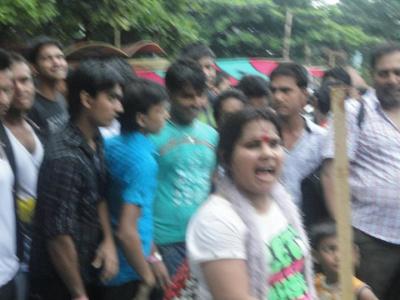 ঘটনা ওখানেই জানলাম।ওয়াটার পার্কে কোন গান ছাড়া হয়নি বলে নাকি উচ্ছৃংখল কিছু ছেলেপেলে ভাংচুর শূরু করেছিল।তারপর পূলিশ এসে লাঠি পেটা করে পরিস্থিতি সামলায়।এরমধ্যেই দেখি এক মেয়ে গেটের বাইরে এসেও লাঠি উচিয়ে চিল্লাপাল্লা করছে।ভাংচুর করার চেষ্টা করছে।আশপাশ থেকে অনেক ছেলেপেলে তাকে উৎসাহ দিলেও কাউকে এগিয়ে এসে তার সাথে যোগ দিতে দেখা গেল না।কারন আর কিছুই না,পুলিশের ভয়।বরং দেখলাম মেয়েটা যত চিল্লায়,ততই তারা সোৎসাহে তার ছবি তুলতে থাকে মোবাইলে।একবার সাইড ফেস,একবার ফ্রন্ট ফেস!