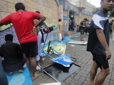 একজনকে জিজ্ঞেস করতেই সে জানাল ভয়াবহ খবর।বলল,"ওখানে যাবেন না।ভীষন মারামারি হচ্ছে!ওয়াটার কিংডমের সবকিছু ভেঙ্গে চুরে পানিতে ফেলে দিয়েছে।স্পিকারগুলোকেও।বাচ্চা নিয়ে না যাওয়াই ভাল।"