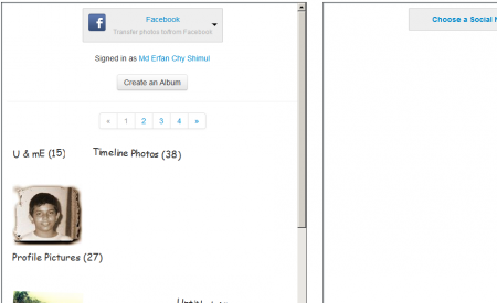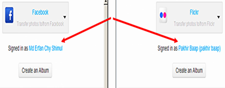 ৫)বামদিকের প্যান থেকে যে ফেসবুক একাউন্টের ছবি ব্যাকআপ রাখবেন সেটিতে লগইন করুন। আর ডান দিকের প্যান থেকে ফ্লিকার বা অন্যান্য যে সাইটের একাউন্টে ব্যাকআপ রাখবেন সেটিতে লগইন করুন।
