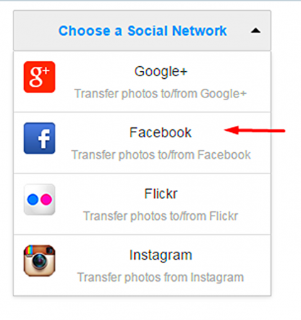 ৪)এরপর ডানদিকের প্যানেরও 'Choose a social network' বাটনে ক্লিক করুন।এরপর যে মেন্যু লিস্ট আসবে সেটা থেকে আপনি যে সাইটে ছবি পাঠাতে বা ব্যাকআপ রাখতে চান সেটাতে ক্লিক করুন। আমি ব্যাকআপ রাখার জন্য ফ্লিকার বেঁছে নিয়েছি Flicker আইটেমে ক্লিক করেছি।