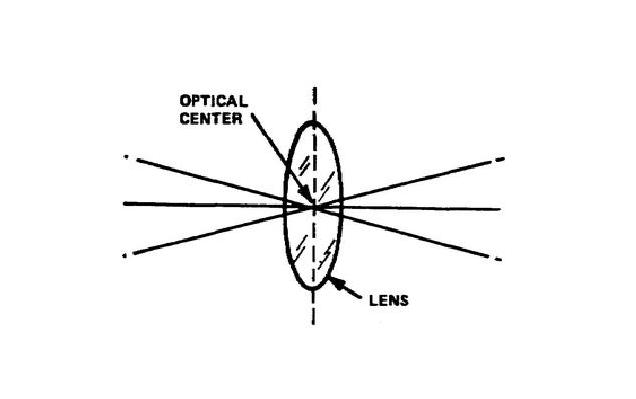 অপটিক্যাল সেন্টার - লেন্সের মধ্যে একটি কাল্পনিক বিন্দু যেখানে আলোক উৎস থেকে পতিত আলোক রশ্মি প্রতিসারিত না হয়ে অপর প্বার্শে যায়। নীচের চিত্রে দেখানো হইলো।