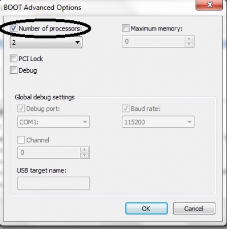 5. ডায়ালগ বক্সটির বামে উপরের কোণা একটি টিক বক্সে টিক দিয়ে নিচের ড্রপডাউন বক্সে যদি আপনার Processor Dual Core হয় তবে 2 নতুবা 3 অথবা 4 সিলেক্ট করুন।