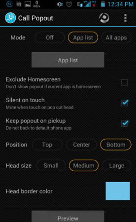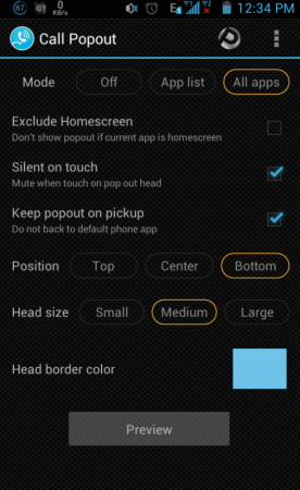 3. Call আসলে যে Head-টি দেখাবে তার Size, Border কালার আর কোথায় দেখাবে, তা এখানে সেটিংস্ করতে হবে!