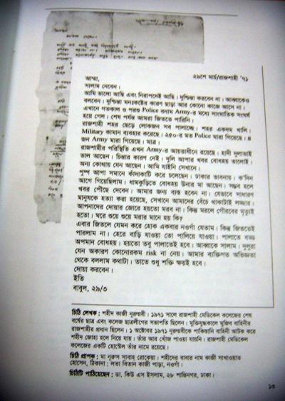 একাত্তরের চিঠি----ঐতিহাসিক এ বইটিতে ছাপানো চিঠিগুলো বইয়ের পাতার স্থির চিত্রে (১)