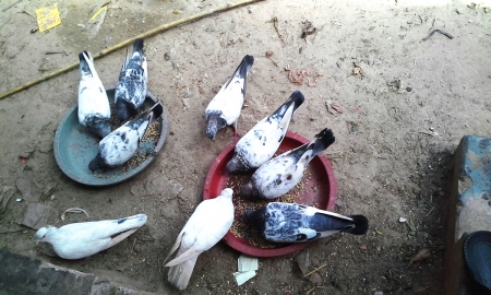 পোষা কবুতর। প্লেটে খাবার খেয়ে অভ্যাস। তাই এদের খাবার সবসময় প্লেটেই দিতে হয়। মাটিতে খাবার দিলে খান না।