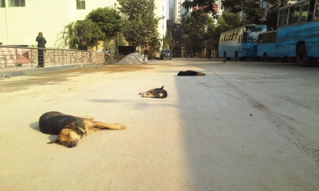 কুকুর হলেও ওদের তো আরাম আয়েশের দরকার আছে। শীতের বিকালে রোদ্রস্নাত হালকা রোদে লাইন ধরে চলছে দিবা নিদ্রা।