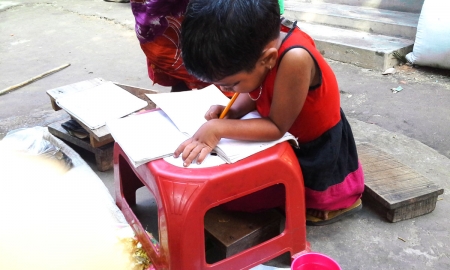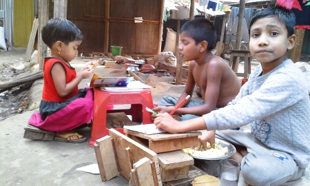 গরীবের লেখাপড়া। সকালের রোদে ছিঁড়া ছালায় বসে বসার পিঁড়ি ও বসার টুলকে টেবিল বানিয়ে চলছে লেখাপড়া। পড়া অবস্থায় ঘরে খেতে গেলে সময় নষ্ট। তাই পড়ার টেবিলেই চারটে ডাল ভাত খেয়ে নিচ্ছে। ছিঁড়া ছালায় বসে লেখাপড়া করলেও এদের অবহেলা করা যাবে না। হয়তো এরাই একদিন আতিয়ার রহমানের মত বাংলাদেশ ব্যাংকের গভর্নর হতেও পারে।